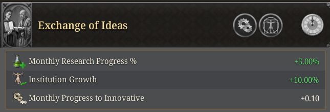 Exchange of Ideas is one of very few sources of flat research progress in the game, but requires at least 50 in both Innovative and Humanist.
